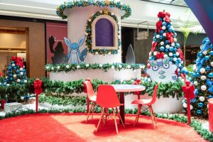 O espaço principal conta com um cenário temático repleto de cores vibrantes, elementos lúdicos e o personagem mais esperado da temporada: Pikachu.