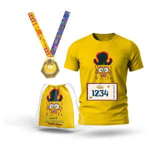 Outro destaque são os kits temáticos, que fazem sucesso entre fãs da animação. Há opções inspiradas em Bob Esponja, Patrick Estrela, Lula Molusco, Sr. Sirigueijo e Holandês Voador, além de um kit “Melhores Amigos”, voltado para quem deseja participar em dupla. Os kits completos incluem camiseta temática, medalha, número de peito e sacochila. Também há a opção de kit básico, sem camiseta, com valores mais acessíveis.