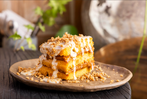 O restaurante Hospedaria, com unidades na Mooca e no Itaim, leva para o delivery um clássico brasileiro: o Bolo de Coco Gelado (R$ 26). Molhadinho e coberto por coco ralado, ele é a escolha ideal para quem busca um doce que remete a lembranças afetivas e encontros em família.