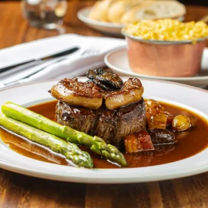 Uma das experiências gastronômicas mais sofisticadas para celebrar o Dia do Bacon acontece no Merci Brasserie, restaurante francês localizado no complexo Vila Anália, o maior da América Latina. Entre os clássicos do menu, o destaque vai para o Tournedor Rossini (R$ 281): filé mignon grelhado servido com molho rôti e trufa, acompanhado de foie gras, aspargos, cogumelos paris, cebola echalote e batata gratin. O toque especial que arremata a receita é justamente o bacon, ingrediente que eleva ainda mais o sabor do prato.