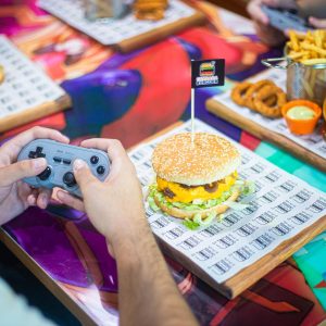 O ambiente é super descontraído e repleto de referências à cultura pop. Enquanto saboreia lanches criativos e saborosos, é possível aproveitar os fliperamas retrô e videogames disponíveis no espaço, tornando a refeição ainda mais divertida.