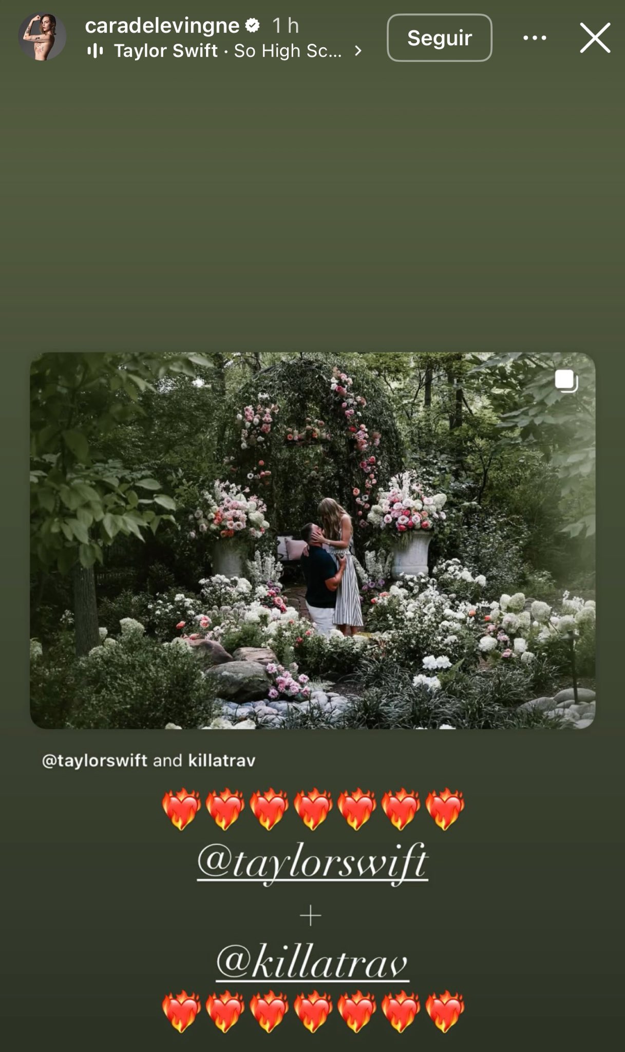 Kelce também prestigiou a noiva em diversos momentos, e até subiu ao palco da The Eras Tour, mais recente turnê de Taylor. Surpreendentemente, ele elevou o nível e performou com a namorada, levando igualmente os fãs à loucura. Na ocasião, participou do ato da canção “I Can Do With a Broken Heart”, onde carregou Swift no colo.