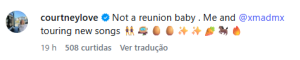 Porém, mais tarde, Courtney negou a reunião da banda, afirmando que a excursão com Melissa contará com músicas inéditas. Ela escreveu: “Não é uma reunião, amor. Melissa e eu faremos uma turnê com novas músicas.”
