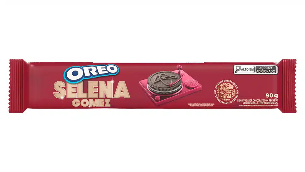 Selena Gomez uniu forças com a marca Oreo. Em parceria com a cantora, a empresa lançará um biscoito especial, recheado com leite condensado e canela e com a reprodução do autógrafo da artista na casca de chocolate.