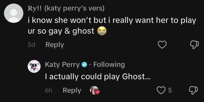 Apesar de não dar certeza, Katy revelou no TikTok que “Ghost” também pode aparecer no repertório da “The Lifetimes Tour”.