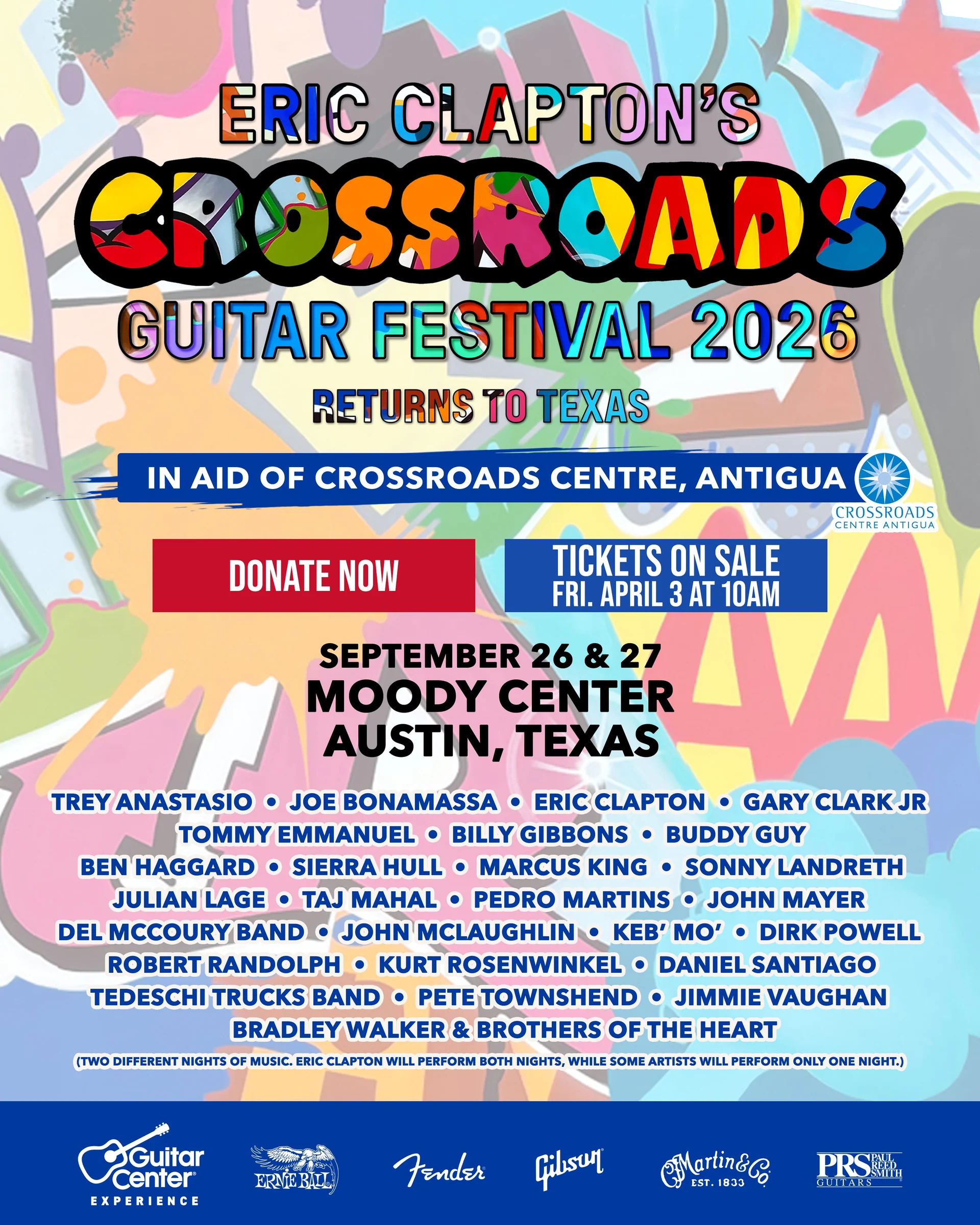 Desde 1999, Eric Clapton mantém o festival Crossroads Guitar Festival. Após a edição mais recente em 2023, o evento voltará a acontecer nos dias 26 e 27 de setembro, no Moody Center, em Austin, Texas, nos Estados Unidos.