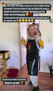 Em uma publicação nos Stories do Instagram, Teyana compartilhou uma imagem da colega vestindo peças de sua linha de produtos. Amy apareceu usando itens da coleção “Concrete Rose”, incluindo um par de tênis Nike Air Jordans, além de posar com ferramentas de jardinagem douradas e mais de uma dúzia de rosas vermelhas.