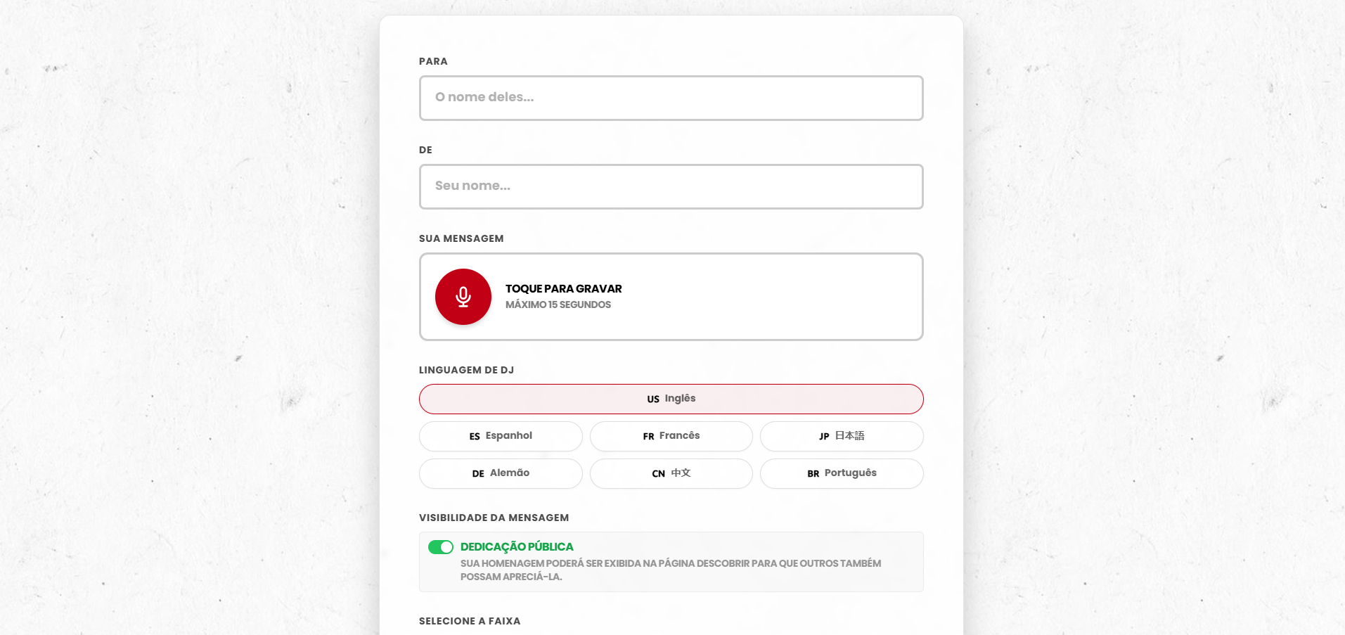 Ainda, é possível escolher a voz do DJ eletrônico, que ficará responsável por criar toda a homanegem. Entre as linguagens já pré-selecionadas, estão inglês, espanhol, alemão, francês, chinês, japonês e português.