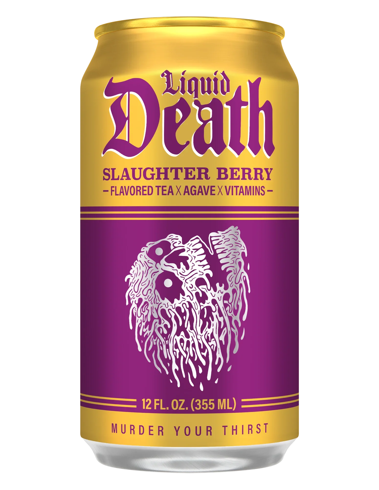 “A Liquid Death realmente fez o Príncipe das Trevas beber de 10 latas de seu Chá Gelado de baixa caloria. E sim, ele mesmo esmagou cada lata. No processo, ele deixou vestígios de DNA de sua saliva que agora você pode ter. Ele até assinou à mão cada rótulo da embalagem.”