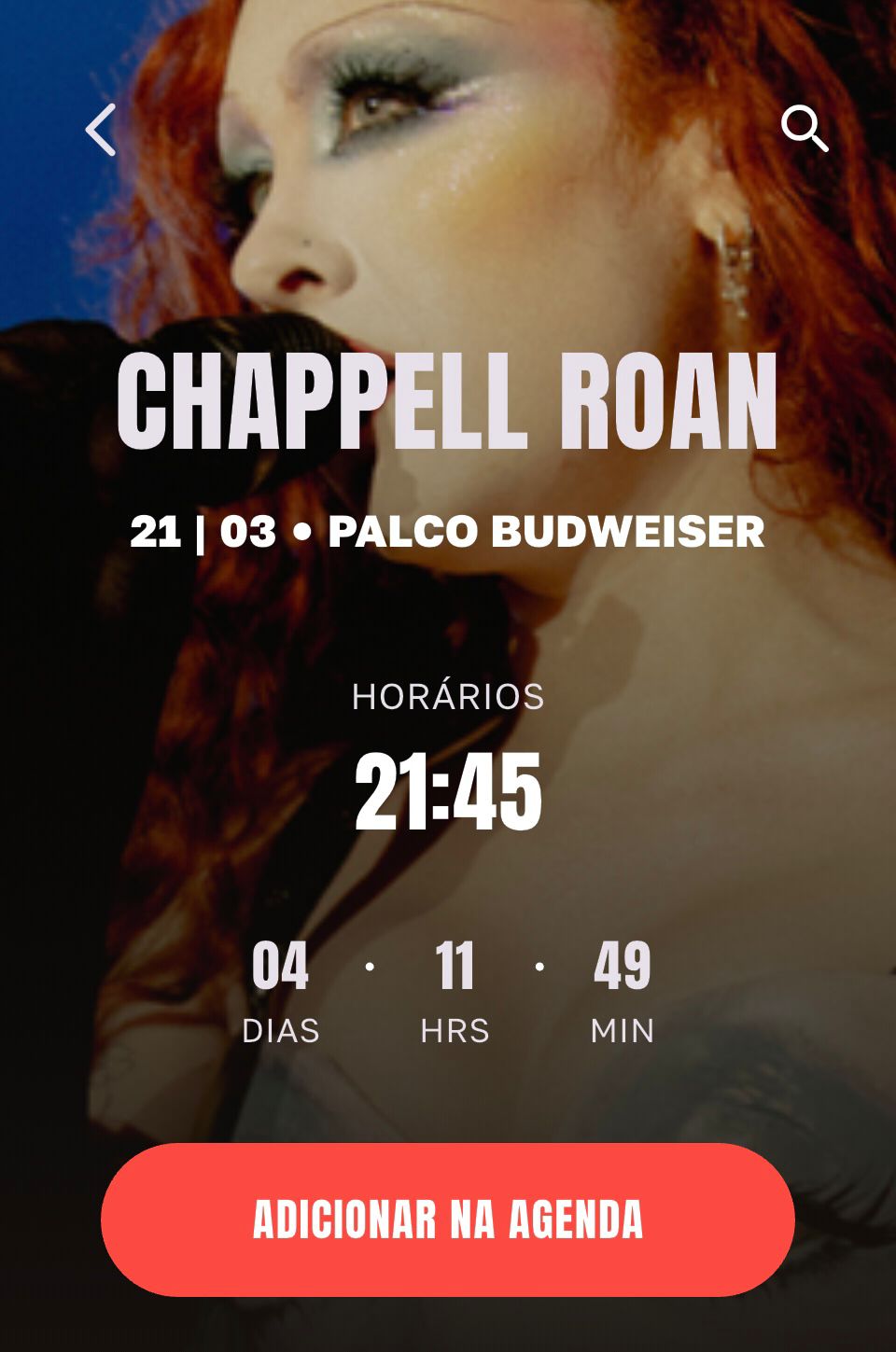 O aplicativo oficial do festival atualizou e agora mostra que a cantora subirá ao palco Budweiser, o principal, às 21h45 e não mais às 21h30. A artista estadunidense cantará no segundo dia do evento, em 21 de março, sábado.